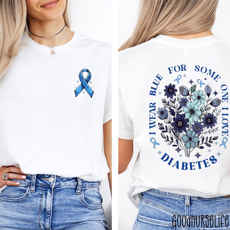 I Wear Blue for Someone I Love Floral Nurse Two Sided T-Shirt