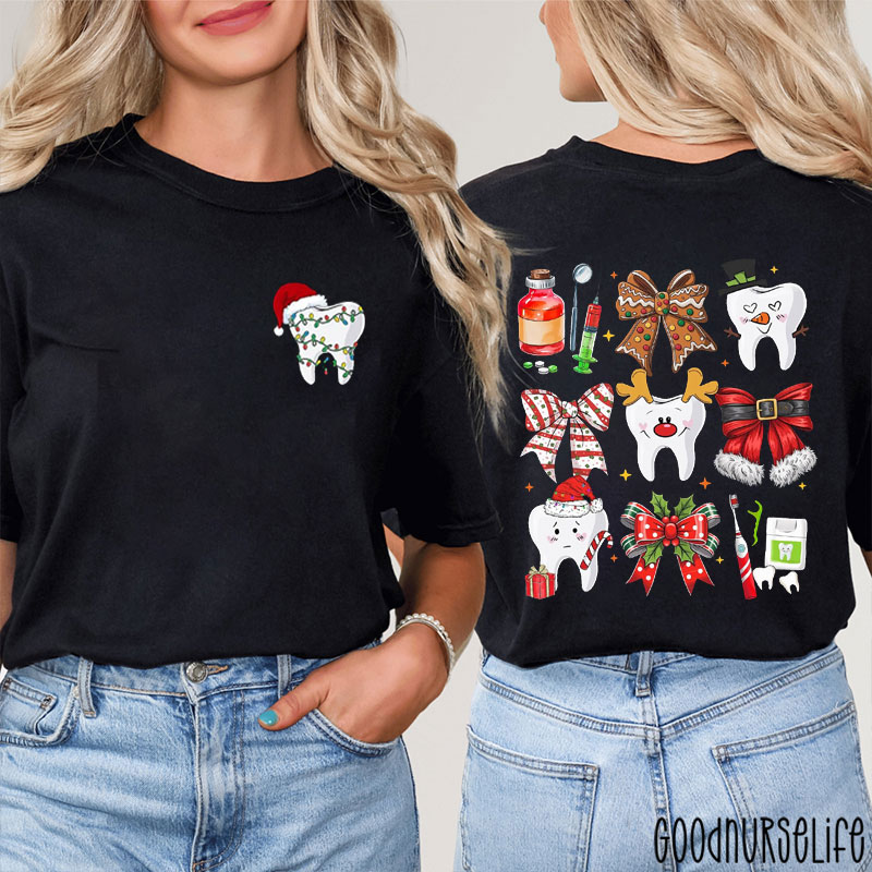 Christmas Dental And Dental Tools Two Sided T-Shirt