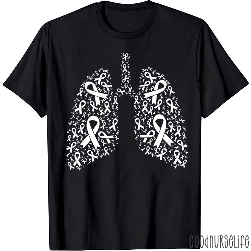 White Ribbon Lung Cancer Awareness Nurse T-Shirt