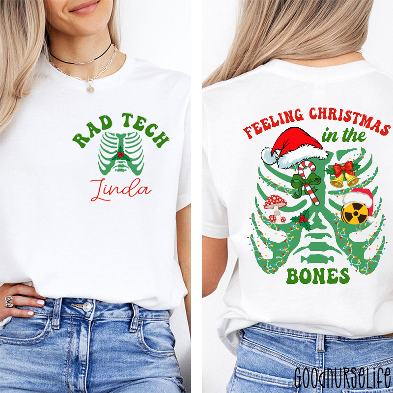 Personalized Name Rad Tech Feeling Christmas In The Bones Radiology Two Sided T-Shirt