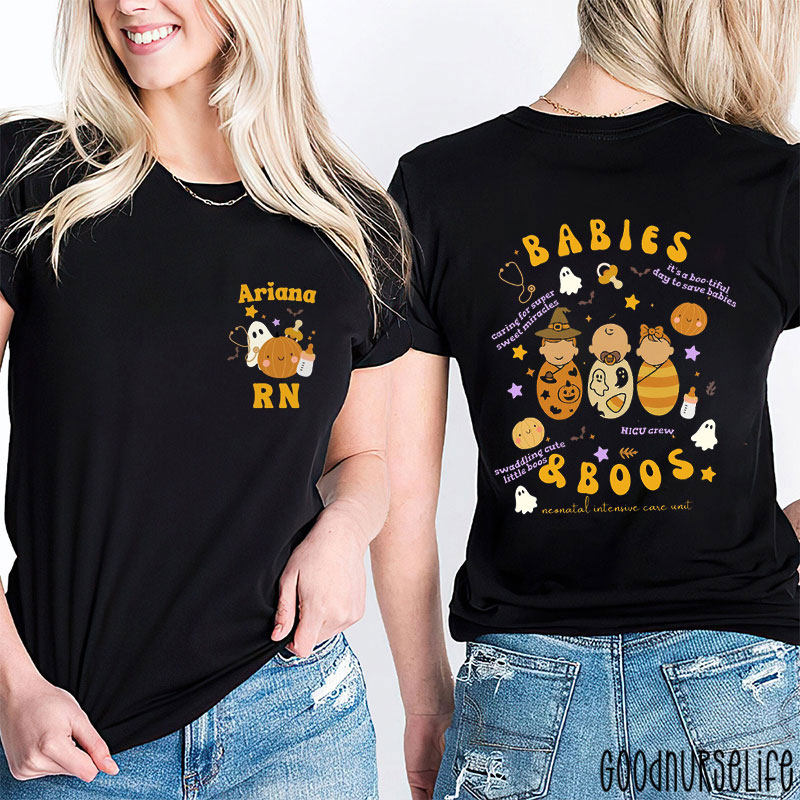 Personalized Babies And Boots Costume Newborns Nurse Two Sided T-Shirt