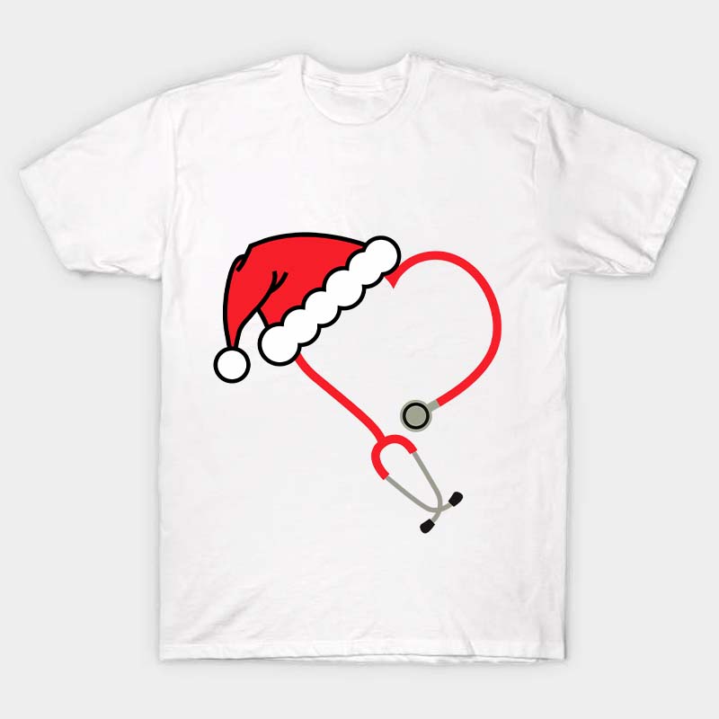 Heart Shaped Stethoscope With Santa Hat Nurse T-Shirt