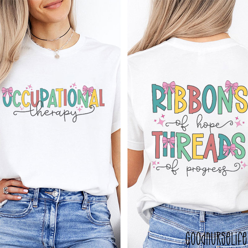 Occupational Therapy Ribbons Of Hope Threads Of Progress Occupational Therapist Two Sided T-Shirt