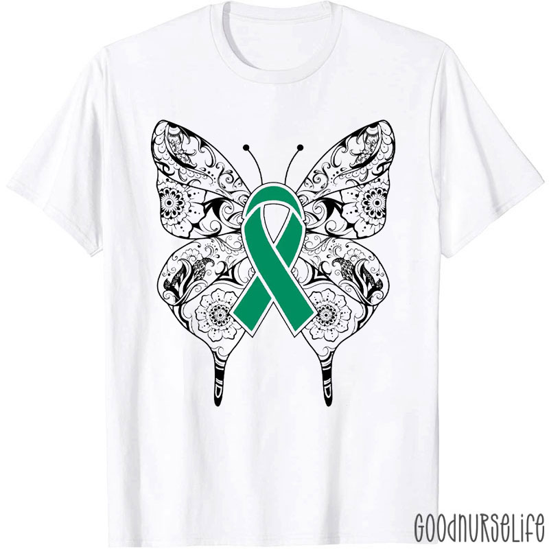 Green Ribbon Awareness Butterfly Nurse T-Shirt