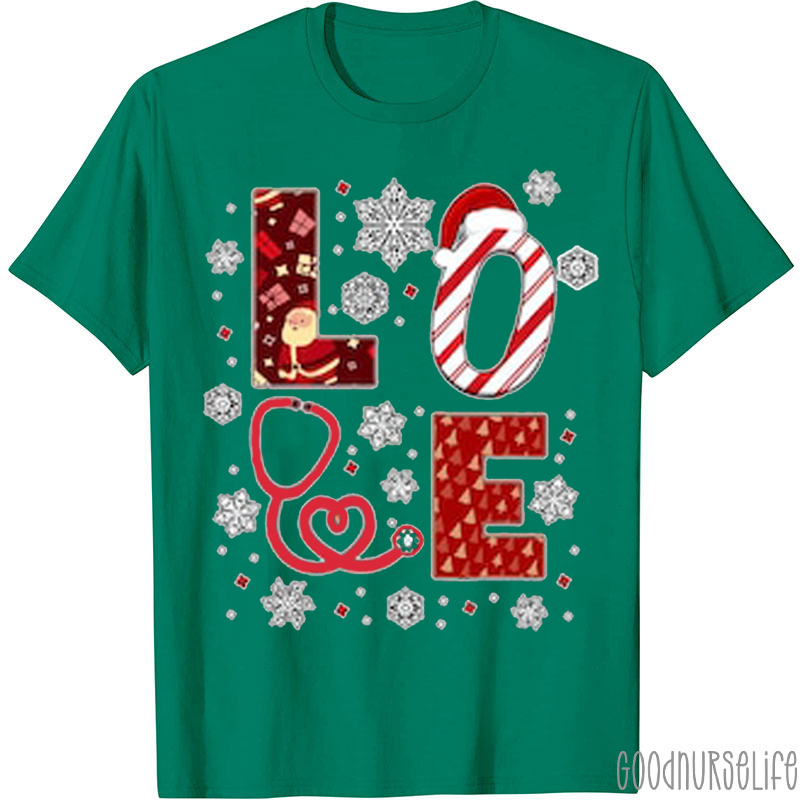 Snowflake Stethoscope Love Nurse Christmas T-Shirt