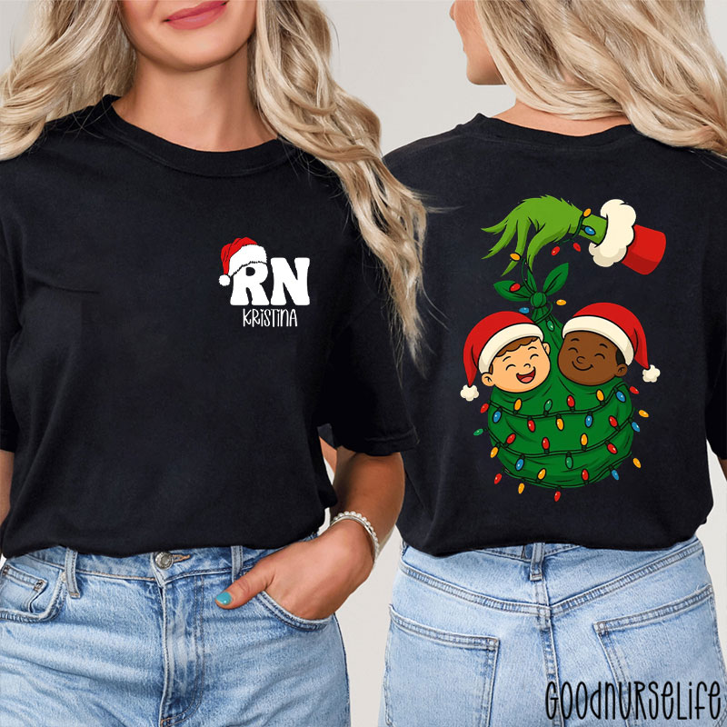 Personalized Kids In Lights Hand Nurse Two Sided T-Shirt