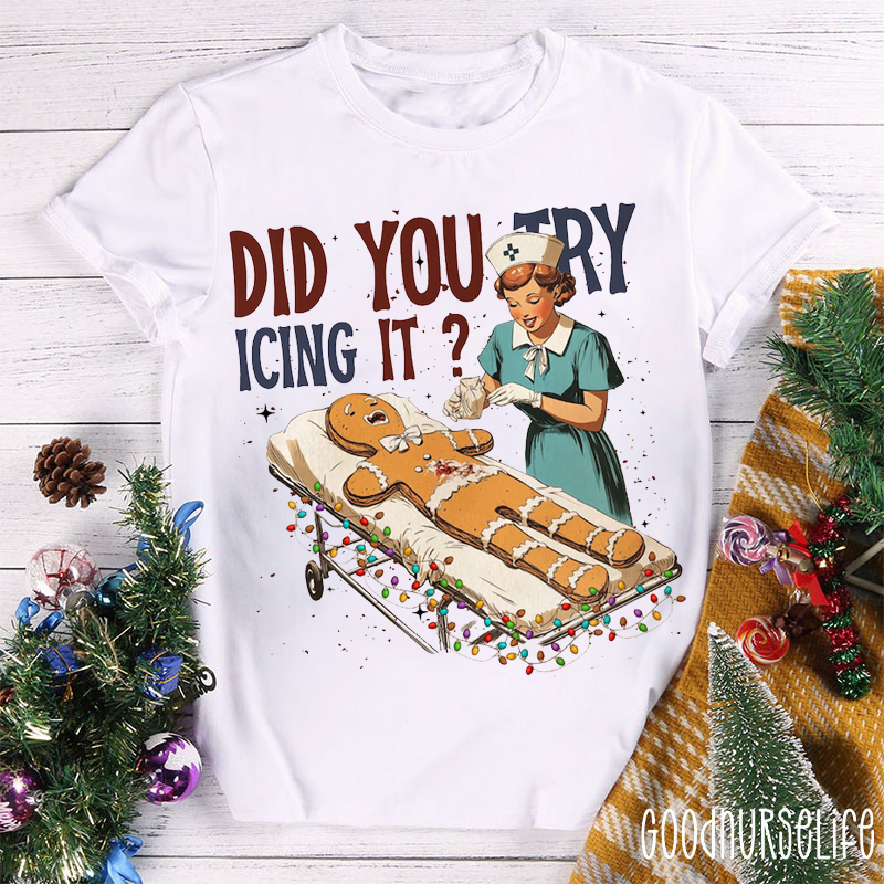 Did You Try Icing It Gingerbread Man Nurse Christmas T-Shirt