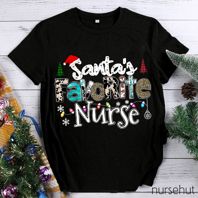 Santa's Favorite Nurse Leopard Christmas Nurse T-Shirt