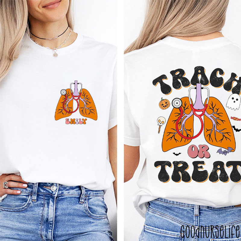 Personalized Lung And Stethoscope Trach Or Treat Two Sided T-Shirt