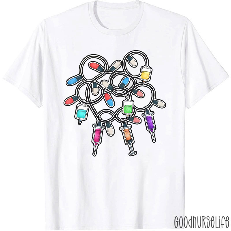 Festive Medical Lights With Pills Syringes Nurse T-Shirt