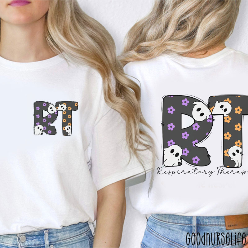 Halloween Cute Ghost Flower Rt Word Two Sided T-Shirt
