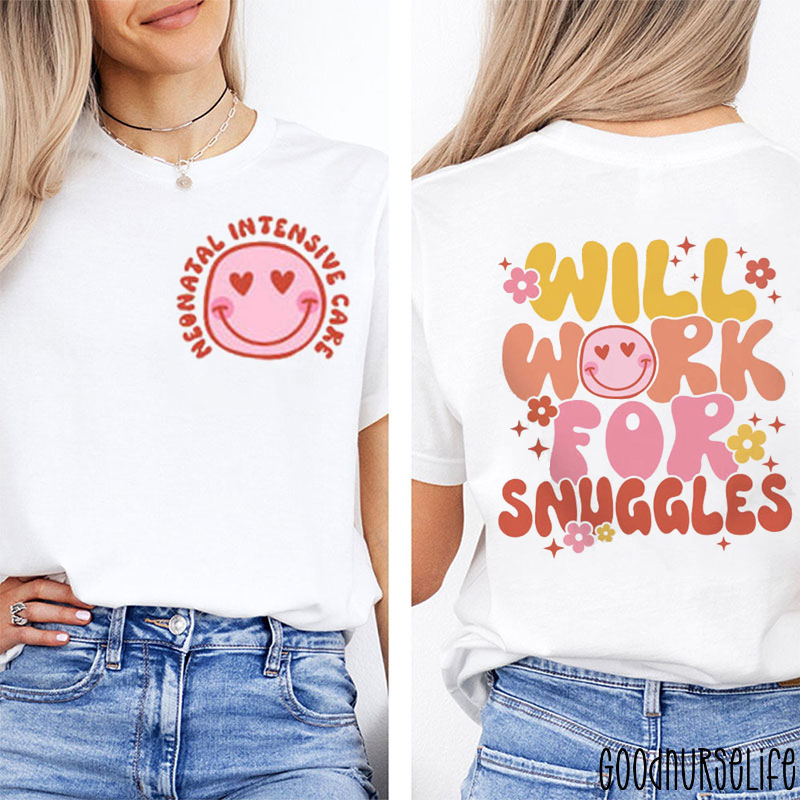 Will Work For Snuggles Nurse Two Sided T-Shirt