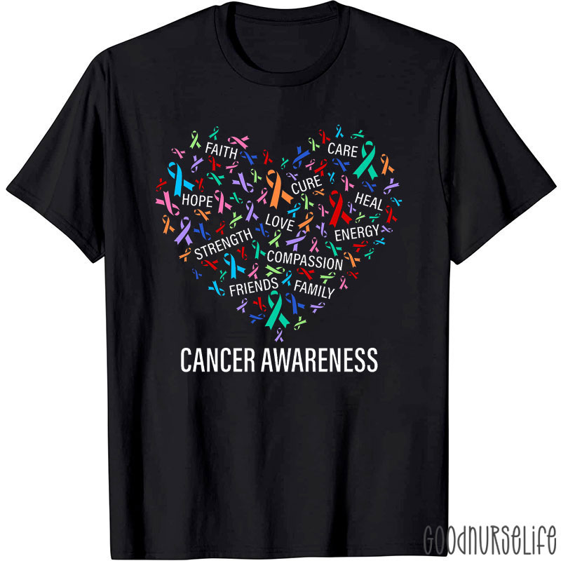 Heart Of Hope Cancer Awareness Ribbons And Words Nurse T-Shirt