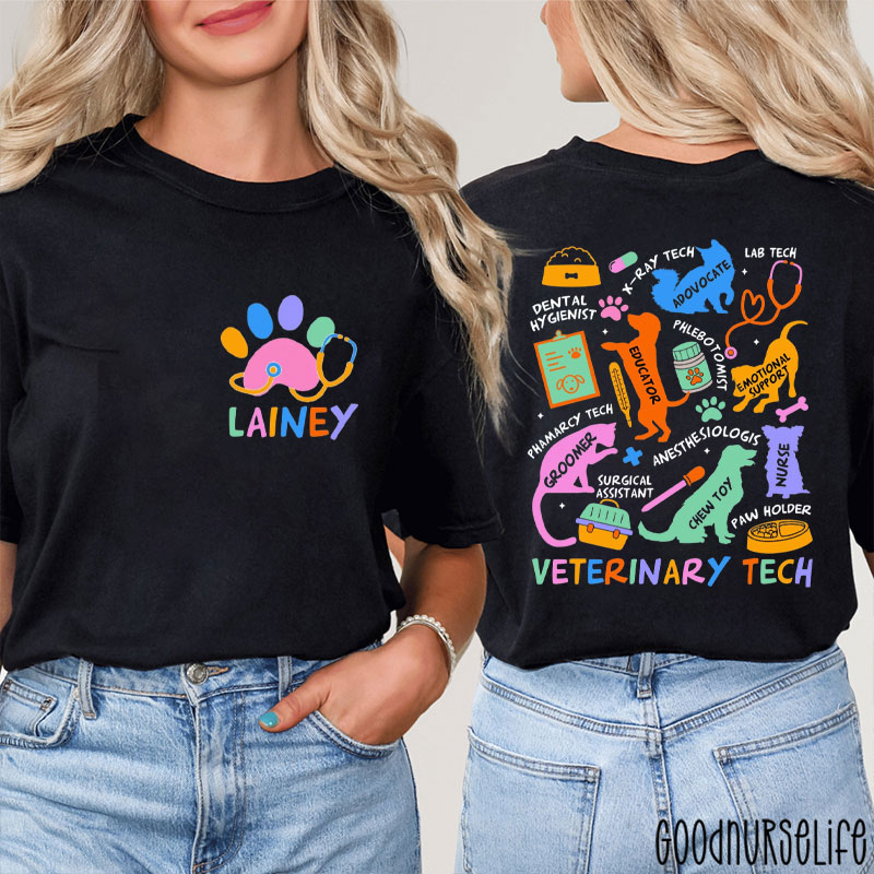 Personalized Name Veterinary Tech Xray Tech Nurse Two Sided T-Shirt