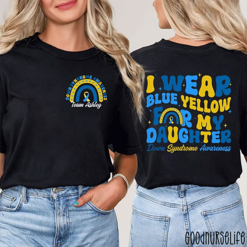 Personalized Name I Wear Blue Yellow For My Nurse Two Sided T-Shirt