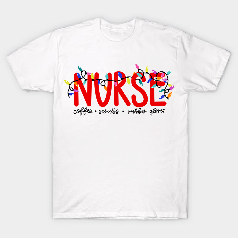 Christmas Coffee Scrubs Gloves Nurse T-Shirt