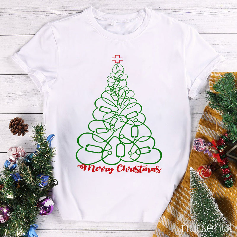 Christmas Tree Made With Stethoscope Nurse T-Shirt
