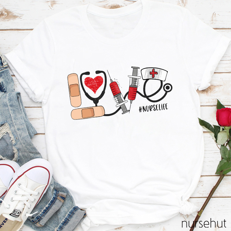Band-Aid Nurse Cap Stethoscope Heart Nurse T-Shirt