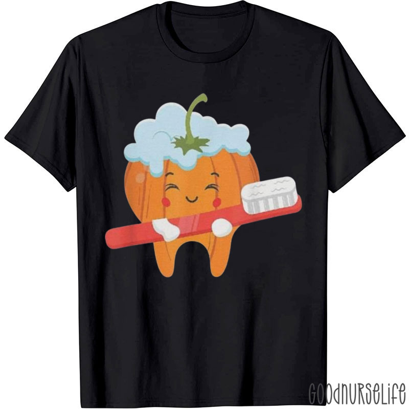 Funny Toothbrush Pumpkin Halloween T-Shirt