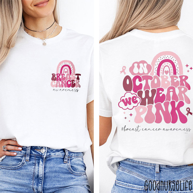 Colorful In October We Wear Pink Breast Cancer Awareness Nurse Two Sided T-Shirt