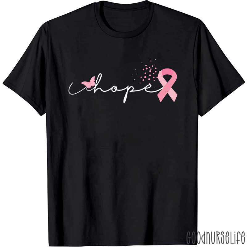 Hope With Pink Ribbon And Butterfly Nurse T-Shirt
