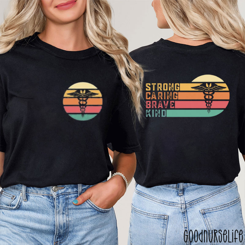 Strong Caring Brave Kind Nurse Two Sided T-Shirt