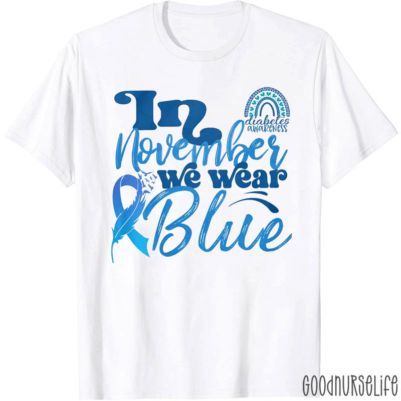 In November We Wear Blue Feather Ribbon Nurse T-Shirt