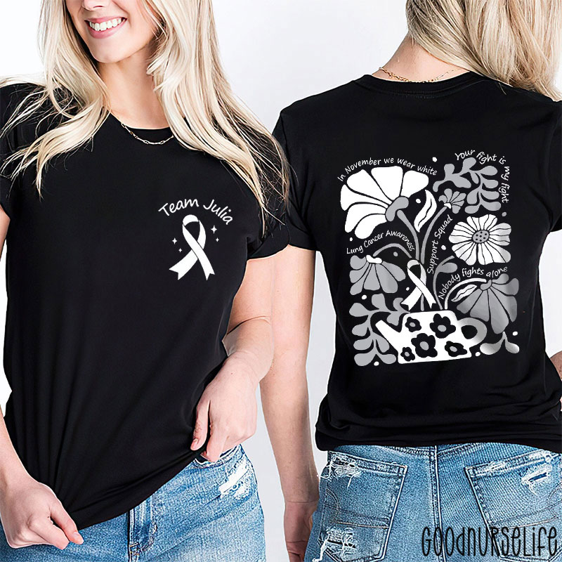 Personalized November White Flower Support Nurse Two Sided T-Shirt