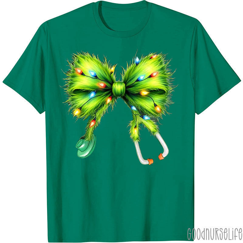 Green Monster Bow Stethoscope Nurse T-shirt