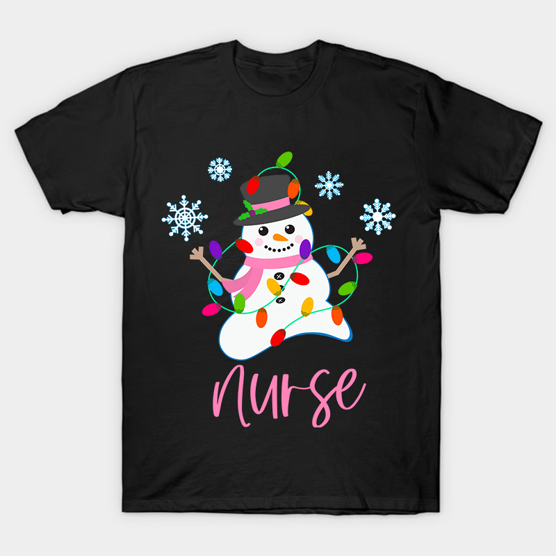 Snowman Playing With Lanterns Nurse T-Shirt