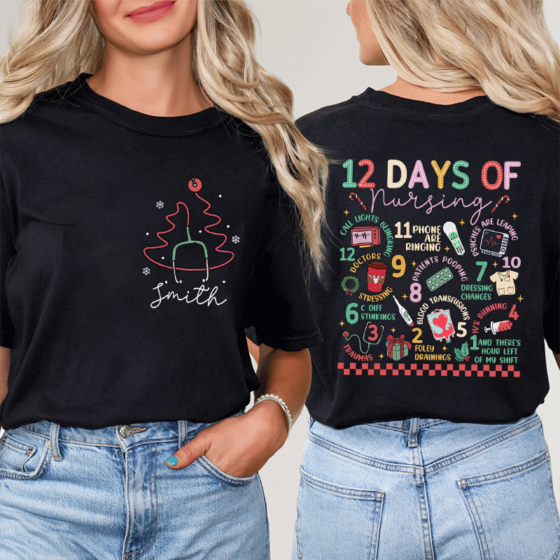 Personalized Name 12 Days Of Nurse Two Sided T-Shirt