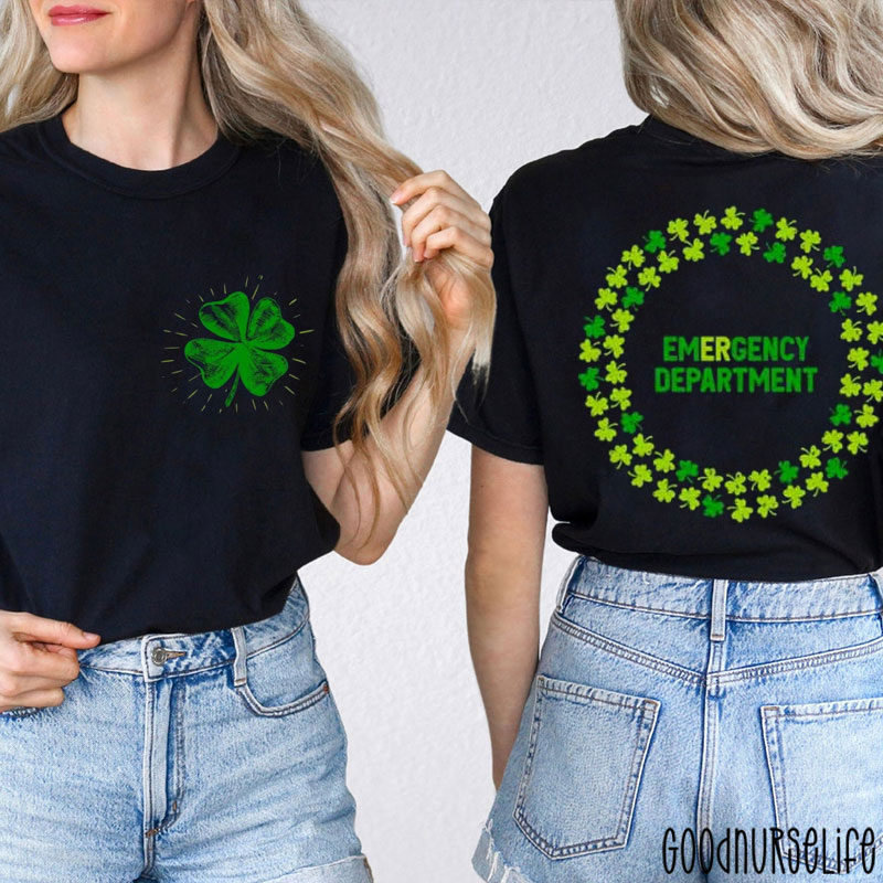 Lucky Clover Emergency Department Nurse Two Sided T-Shirt