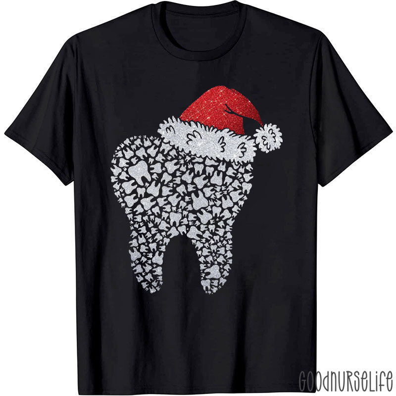 Glitter Santa Hat Tooth Collage T-Shirt