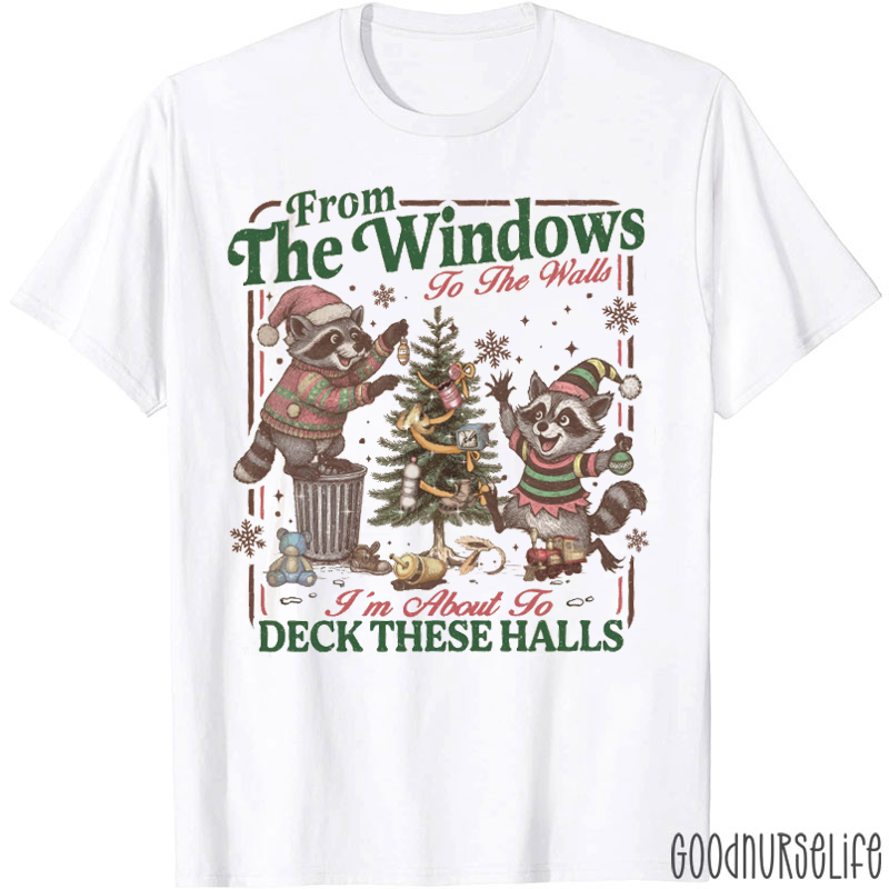 From The Windows To The Walls I'm About To Deck These Halls Funny Raccoon Nurse T-Shirt