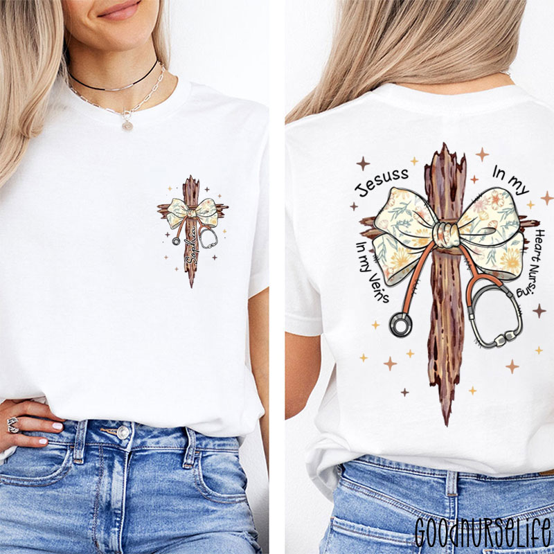 Personalized Jesus In My Heart Nursing In My Veins Nurse Two Sided T-Shirt