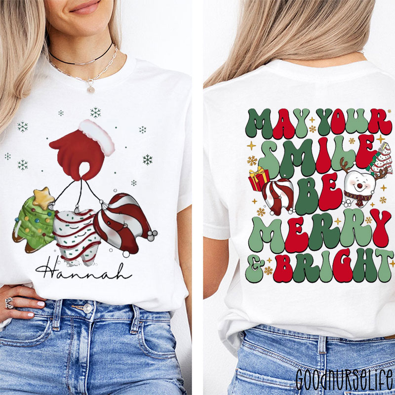 Personalized May Your Smile Be Merry And Bright Dental Two Sided T-Shirt