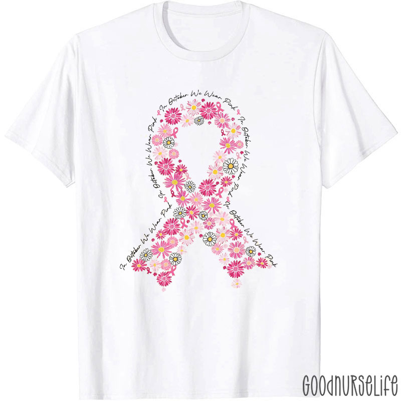 Floral Pink Ribbon For Breast Cancer Awareness Nurse T-Shirt