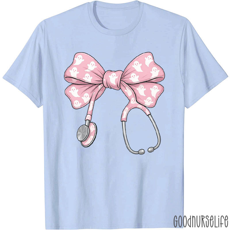Pink With Ghost Bow Stethoscope Nurse T-Shirt