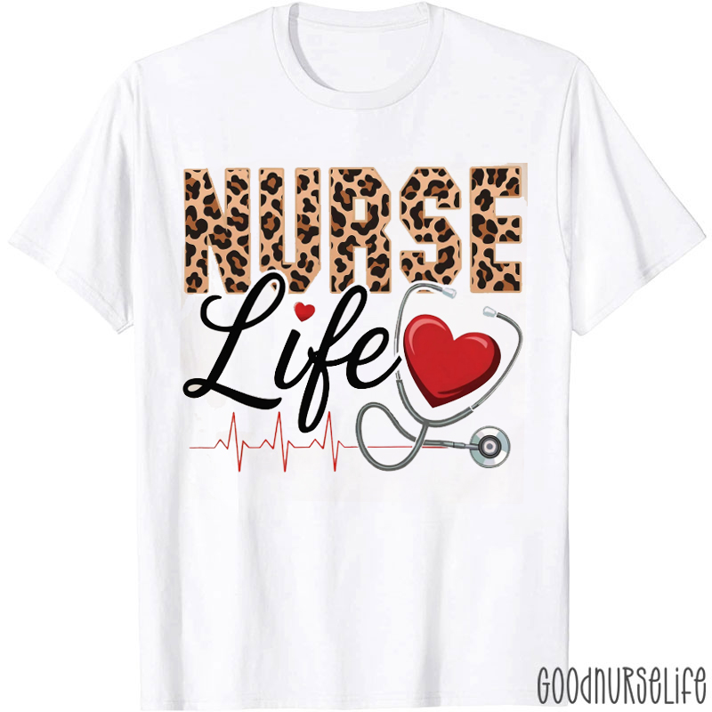 Personalized Leopard Heartbeat Heart Nurse T-Shirt