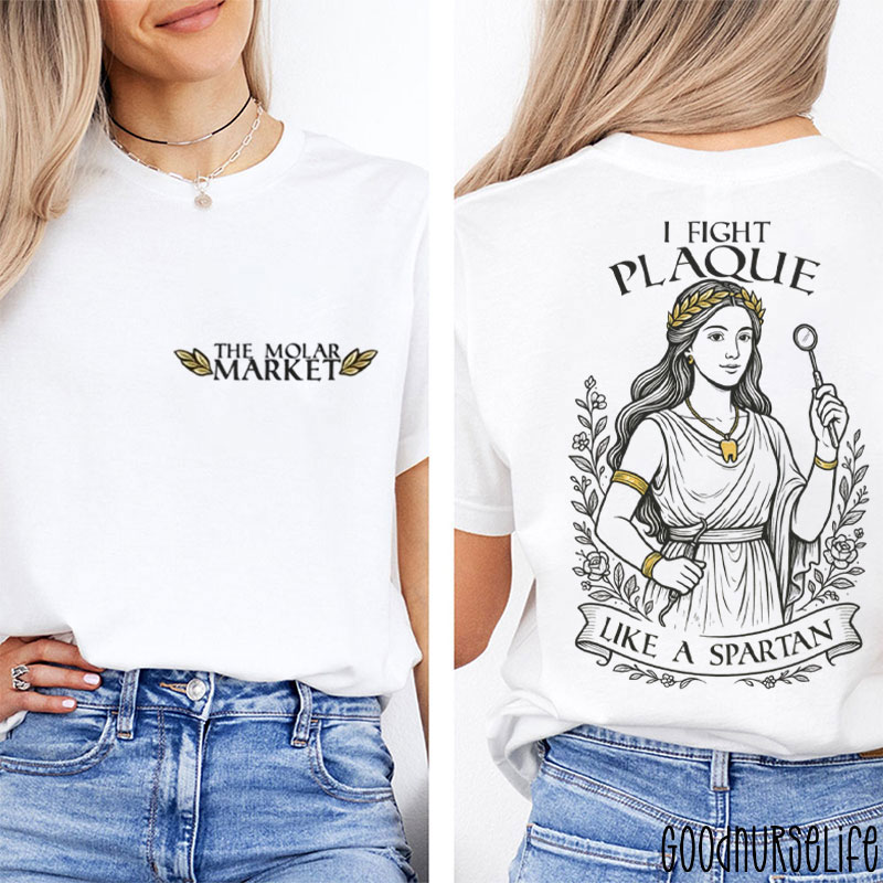 The Molar Market I Fight Plaque Like A Spartan Two Sided T-Shirt