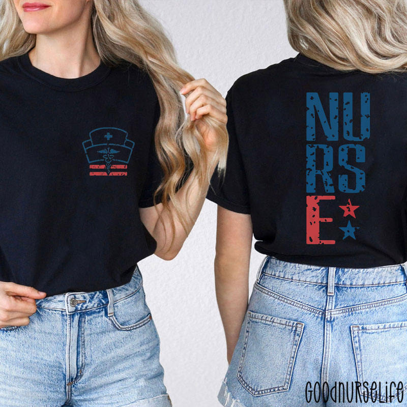 4th Of July Patriotic Nurse Two Sided T-Shirt