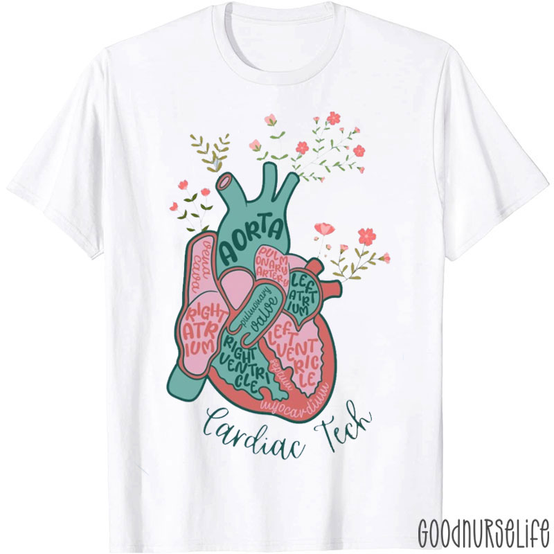 Cardiac Tech Heart And Flower Nurse T-Shirt