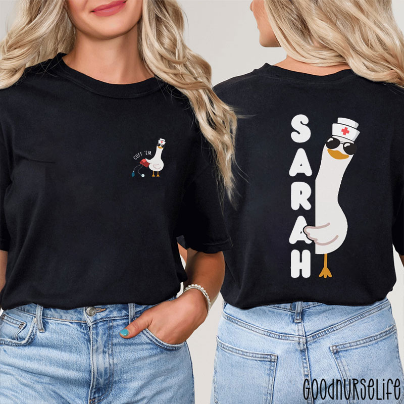 Personalized The Nurse Goose With Sunglasses Nurse Two Sided T-Shirt