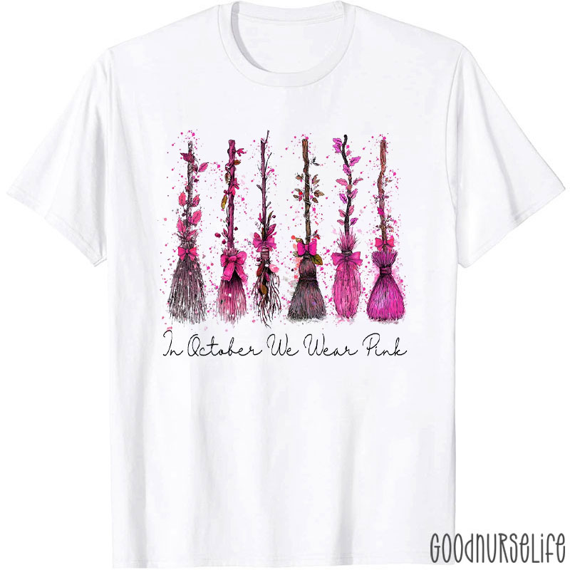 Pink Brooms Of October Nurse T-Shirt