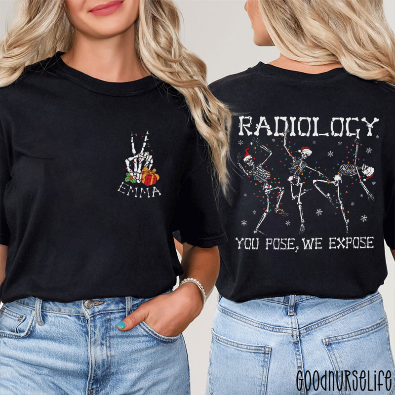 Personalized Name Radiology You Pose We Expose Skeleton Two Sided T-Shirt