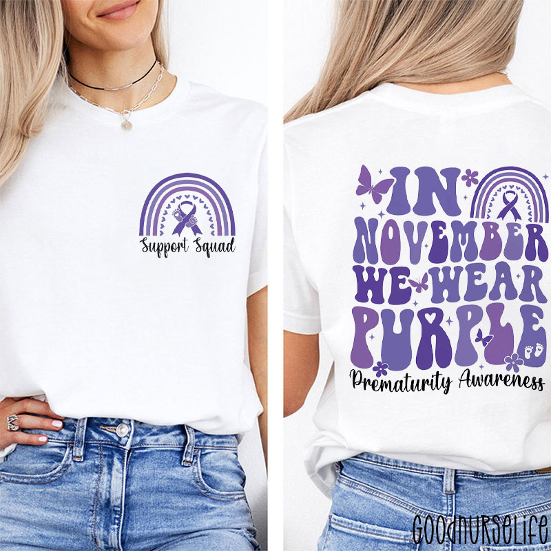 Health Advocacy In November We Wear Purple Prematurity Awareness Nurse Two Sided T-Shirt