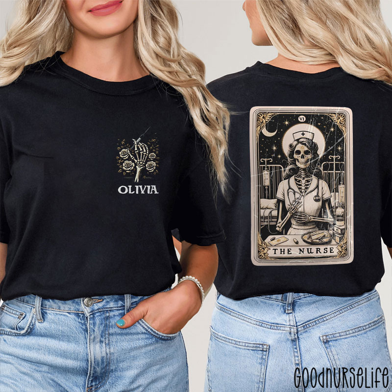 Personalized Tarot Skeletal The Nurse Two Sided T-Shirt