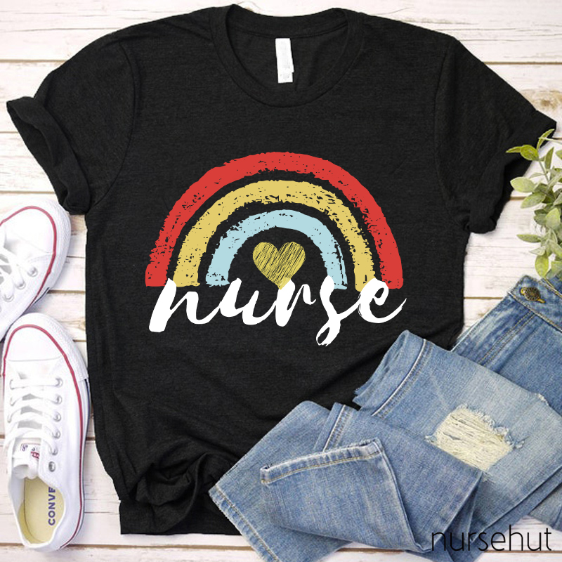 Rainbow And Heart Nurse T-Shirt