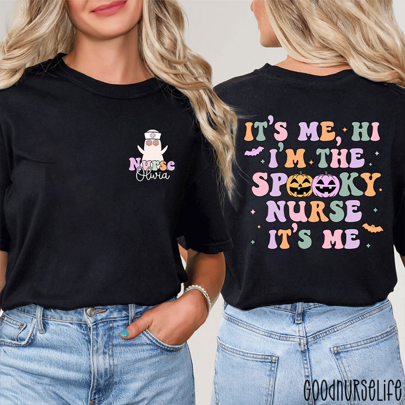 Personalized It’s Me Hi I’m The Spooky Nurse Two Sided T-Shirt