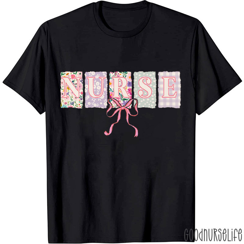 Personalized Floral Coquette Bow Nurse T-Shirt